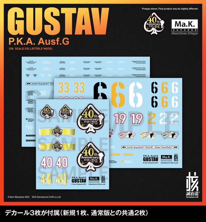 中國玩具廠牌「核誠治造 (EARNESTCORE CRAFT) 」在以日本科幻軍事教父-橫山宏創作的《Maschinen Krieger(Ma.K)》為題推出「古斯塔夫」之後,又將於 2022 年 9 月發售紀念《Ma.K》40 週年、全新配色版本的「古斯塔夫」(グスタフ)1/16 比例可動完成品!並同樣由日本模型廠牌 WAVE 發行。