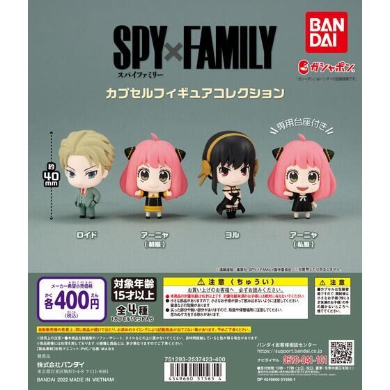 知名日本 BANDAI 萬代玩具公司旗下轉蛋事業部 GASHAPON,旗下的「角色人物收藏」系列將以人氣動畫《SPY×FAMILY間諜家家酒》為主題,推出「SPY×FAMILY 角色人物收藏」轉蛋,一轉參考售價為 400 日圓,預計將於 2022 年 06 月開轉~