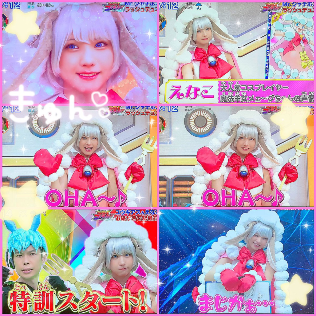 這次 Cos 成為自己配音的角色,えなこ也表示自己格外的感動,從來沒有這種經驗,非常的感謝能有這次的配音演出,也希望觀眾能夠喜歡自己在動畫中的配音演出。