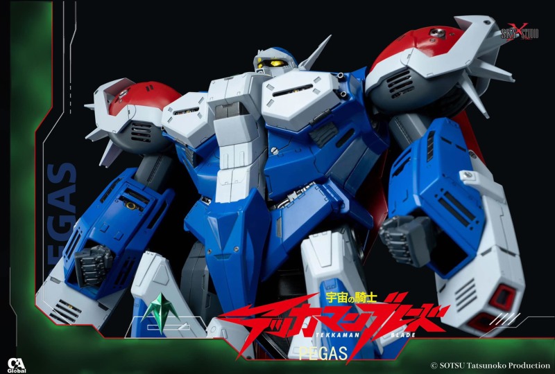 這款由SKY X STUDIO所推出的貝加斯,全高約34公分,與原作設定相同,它的身體可以將TEKKAMAN BLADE給納入其中合體(TEKKAMAN BLADE另售),