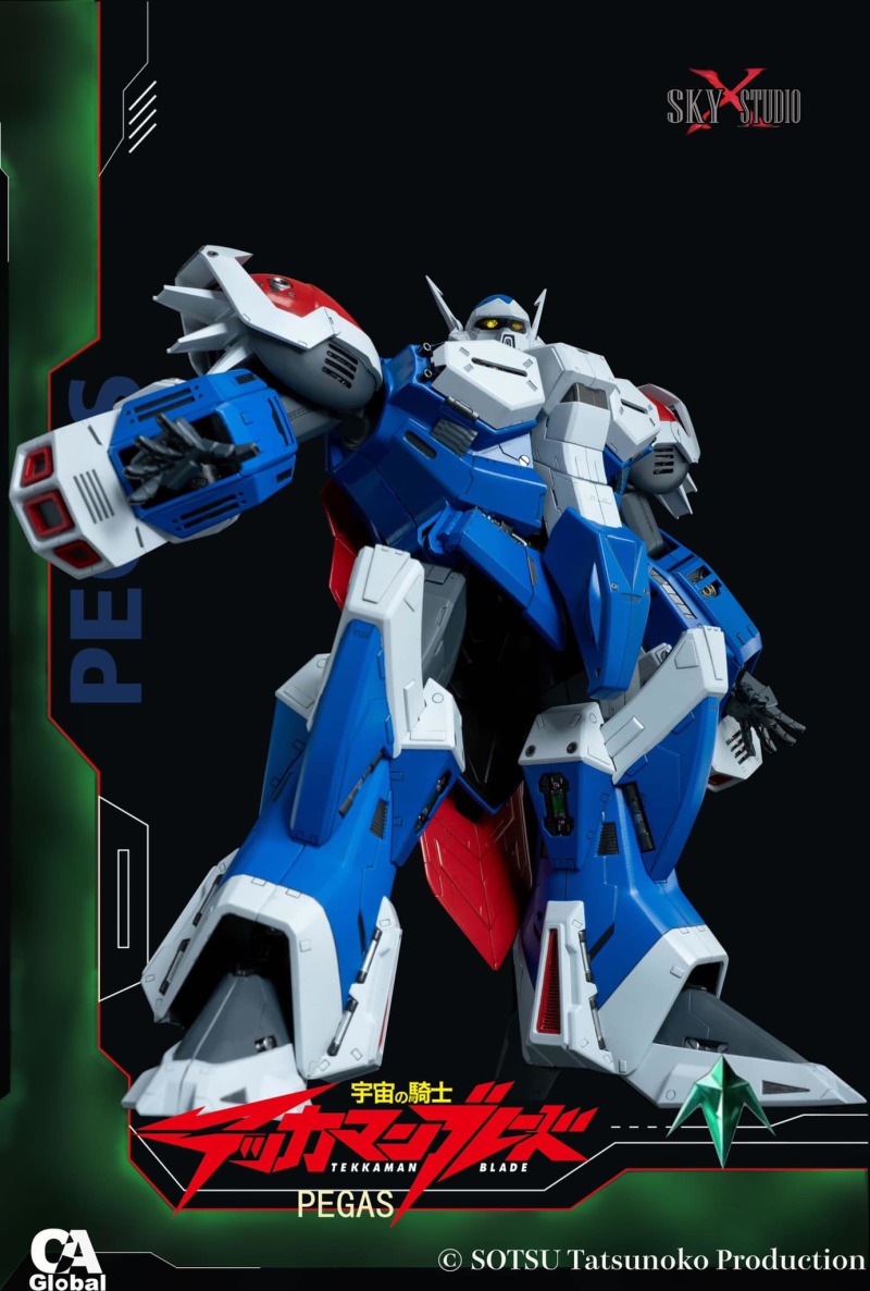 來自香港的新興玩具品牌「SKY X STUDIO」在推出第一款商品「TEKKAMAN BLADE」之後,將要推出同樣來自於動畫《宇宙騎士BLADE》作品中,常常以支援型態幫助主角D-BOY的支援機器人「貝加斯」(PEGAS)之變形可動玩具,預計將於2022年第四季發售。