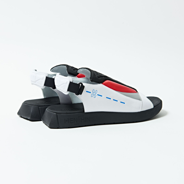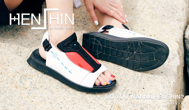 以電王劇情中登場的時之列車デンライナー為題材設計,鞋面以列車外觀打造出極具特色的流線感,搭配可調整的扣帶穿著使用,堪稱夏日涼鞋最帥的一雙 XD。