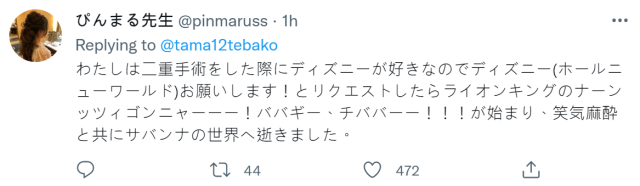 不知道各位網友是否有動過麻醉手術的經驗,在麻藥發揮作用前,有些醫師會在手術房放上病人指定的音樂,幫助他們度過手術。一位日本推主 tama 毛 ( @tama12tebako ) 在推特上表示自己最近動手術時,指定要米津玄師替《新·超人力霸王》演唱的歌曲「M八七」,卻發生意外插曲。吸引不少網友轉推按讚,並也分享各自的經驗。