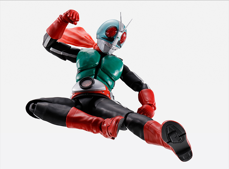 紀念商品「S.H.Figuarts 真骨彫製法 假面騎士新2號 50th Anniversary Ver.」沿用過去曾發售的一般版零件,具備靈活可動關節、還原劇中演員體態與戲服造型等特色,從頭盔上纖細的天線、飄揚的紅領巾、變身腰帶的風車構造都徹底再現,頭部、胸部塗裝更改為貼近近年形象的鮮豔配色,能搭配多種造型手掌把玩出力之 2 號的戰鬥姿態。此版本更附上印有《假面騎士》系列誕生 50 周年紀念 LOGO 的台座。