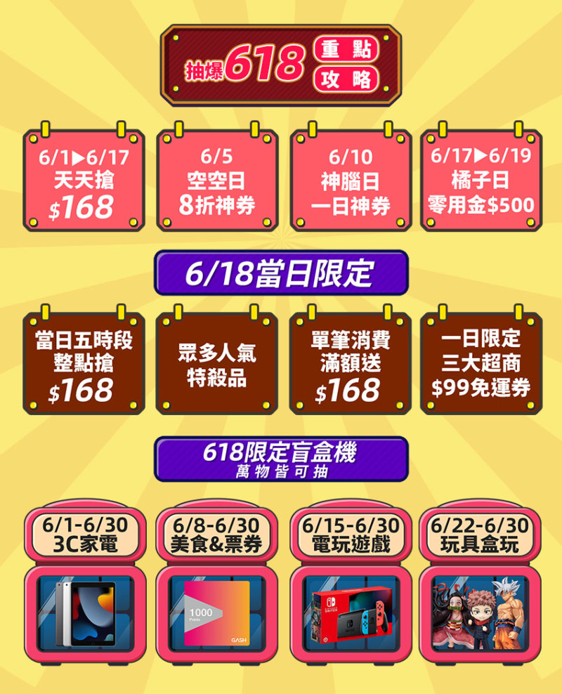 此外,有閑購物在618促銷檔期還推出一系列活動,花$399有機會抽到萬元大獎、天天送$168購物金、天天有特殺品等多重好康.喜歡的朋友趕快筆記起來!