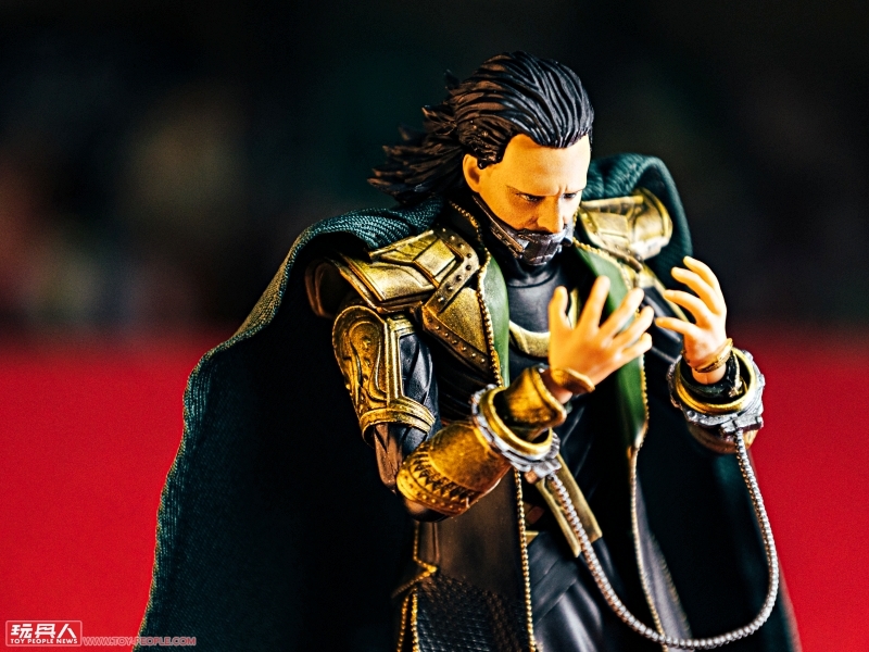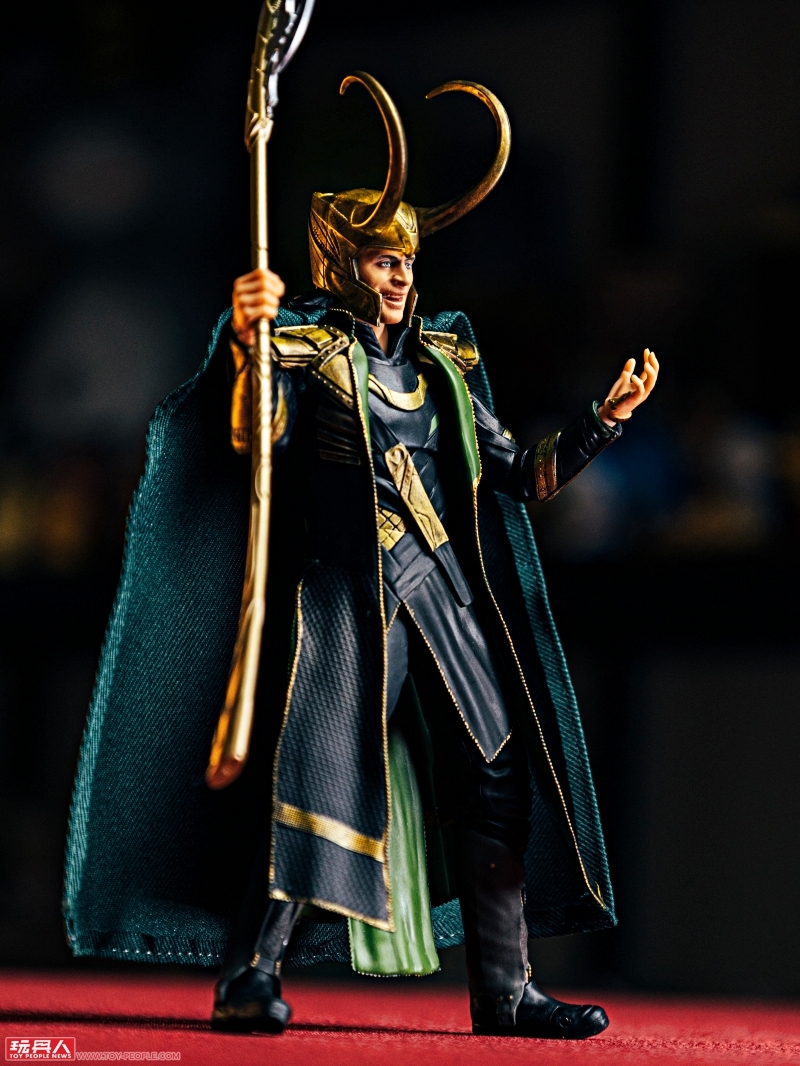 出自《復仇者聯盟》的邪神「洛基」雖然腳部的可動有點那個,不過搶眼的犄角頭盔、權杖、宇宙魔方,以及完美重現被捕時造型的零件,真的好玩。