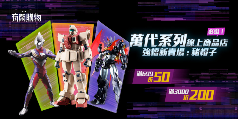 俗話說的好,「錢不是萬能的,錢是萬代的」,各位玩具人,相信這句話你不只是耳熟能詳,甚至可能是親力親為地在實現!這次要帶來由娛樂電商「有閑購物」與玩具店「豬帽子」聯手打造的「萬代系列線上商品店」活動!在這裡,將會發售萬代旗下的豐富商品,並提供各種讚讚的優惠,如果看到之前錯過、但實在忘不了的玩具,這次絕對要手刀下訂啦!