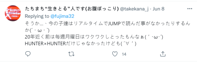 ▼ 也有網友表示,或許現在的年輕學子沒有真的閱讀過《週刊少年Jump》,自己 20 年來每周都非常期待周刊推出,當然也包含《獵人》的連載。