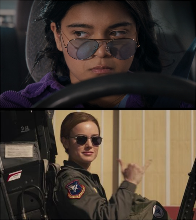 在卡瑪拉路考時可以注意到,她戴著一副與「驚奇隊長」相似的飛官太陽眼鏡。