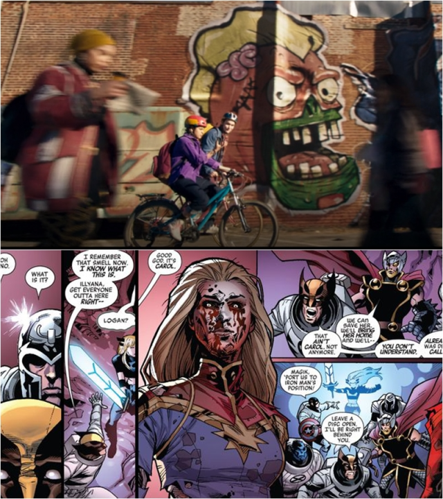 卡瑪拉和布魯諾在街上騎自行車時,腦補了很多天花亂墜的驚奇隊長組合形象,其中有個喪屍驚奇隊長和「奇異驚奇隊長」都分別曾在《驚奇隊長》#28 與 《漫威喪屍系列》漫畫中出現。