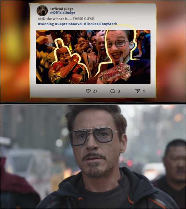 在卡瑪拉的幻想中,她和布魯諾的Cosplay將會獲得冠軍,而布魯諾會戴上 E.D.I.T.H. 同款眼鏡來裝扮成東尼史塔克。