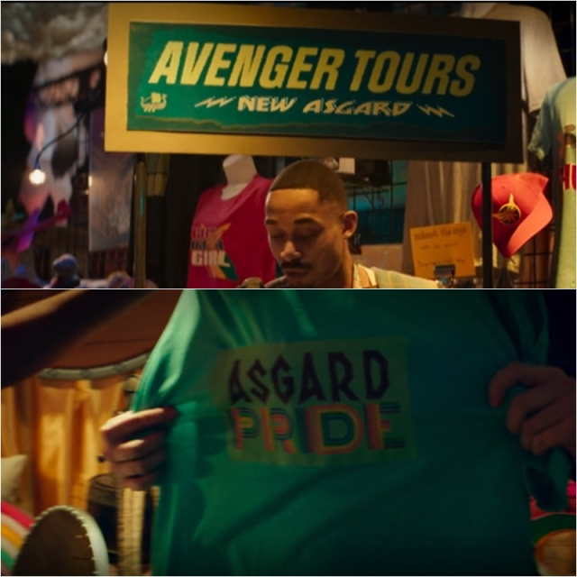博覽會有賣一件「阿斯嘉彩虹驕傲」的T恤,還有一個宣傳新阿斯嘉觀光旅遊的攤位。儘管目前可能還有待《雷神索爾:愛與雷霆》正片揭示,但演員泰莎湯普森已經證實她飾演的「女武神」性向為雙性戀。