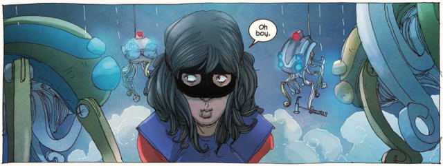 卡瑪拉計畫用「英雄落地」的華麗姿勢逃家去參加「復仇者聯盟博覽會」。顯然她以後遇到葉琳娜也會被嫌棄吧~