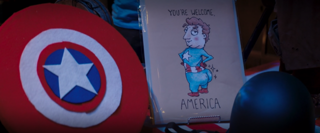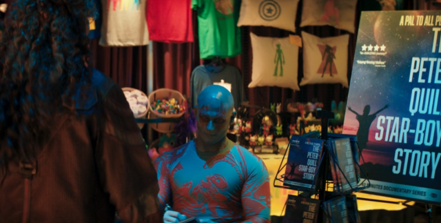 在「復仇者博覽會」當然有琳朗滿目的彩蛋了~不過不難注意到,這個世界已經認識了星際異攻隊,除了有人cosplay成葛摩拉、火箭浣熊、德克斯、螳螂女,現場也有販售格魯特等成員的周邊。