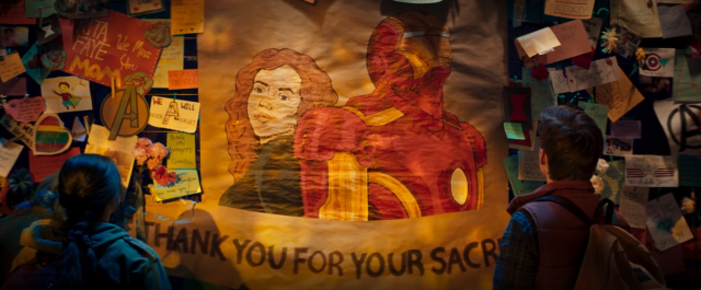 博覽會現場有一面牆,讓大家來留言紀念在《終局之戰》英勇犧牲的鋼鐵人和黑寡婦。
