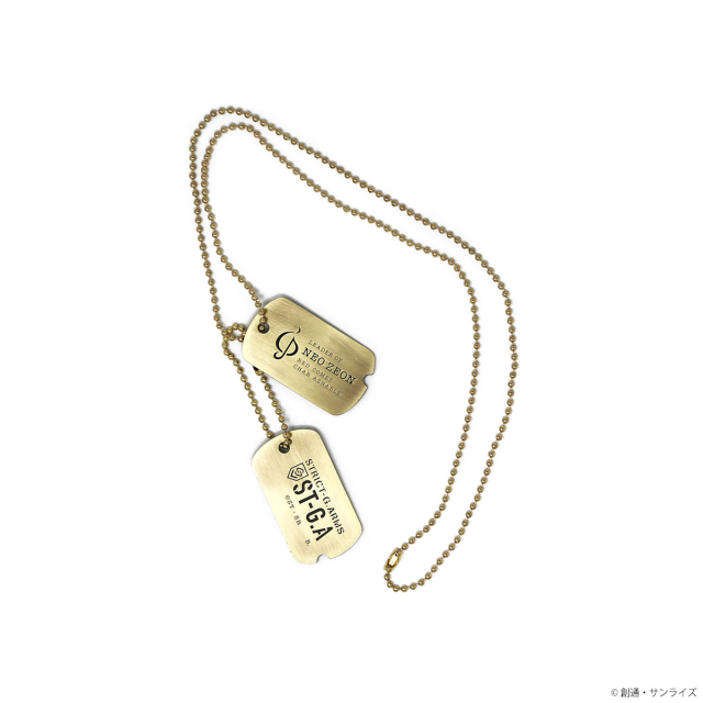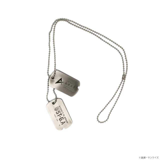 分別以阿姆羅與夏亞的軍牌製作,以銀色與金色的配置給消費者選擇。項鍊長約66cm,軍牌大小長約50mm×寬約28mm×厚約3mm。