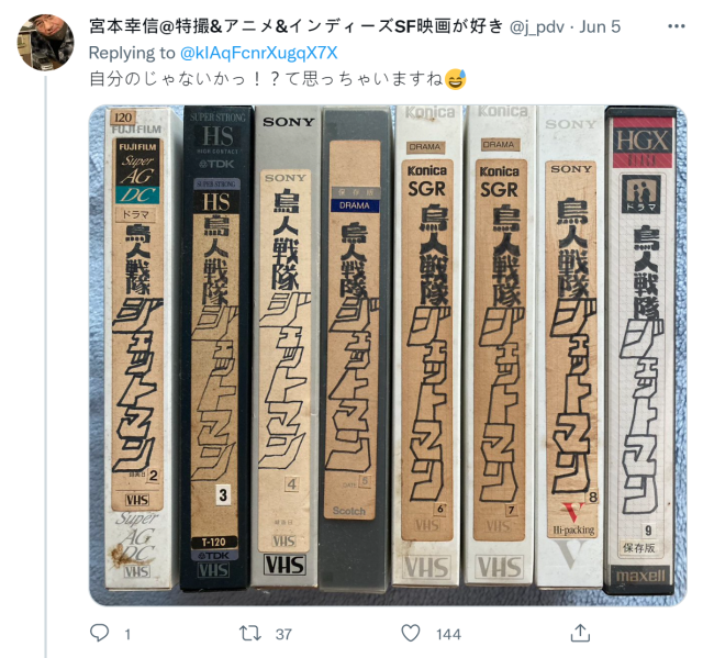 推主表示父親是特攝作品的大粉絲,自己在整理家中的東西時意外發現這些過去錄製的影帶,滿滿過去特攝作品的內容。側邊也可以看到當時父親手寫記錄的影帶內容,還效仿作品的 Logo 寫上,真的很用心。