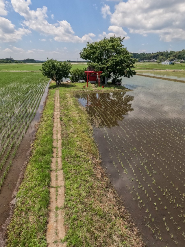 推主也分享了許多他在日本各地旅遊發現的稻田中神社,看來對於這樣的場景,或許在日本也並非很少見,但的確都隱藏在鄉間之中,也是屬於當地農民的信仰。