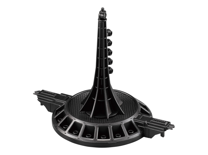 「G-FRAME FA 天帝鋼彈」除了具備靈活的全身可動骨架,外裝甲零件也刻畫出豐富的裝甲線與層次細節,以深灰裝甲、胸前金屬色散熱口呈現機體厚重質感,再裝上搭載 11 具龍騎兵系統光束砲後,機體輪廓更顯現極為魄力的姿態。而底座部分則製作成劇中巨大雷射兵器「創世紀」的砲口與反射鏡造型,連結第二次雅金·杜威攻防戰的回憶。
