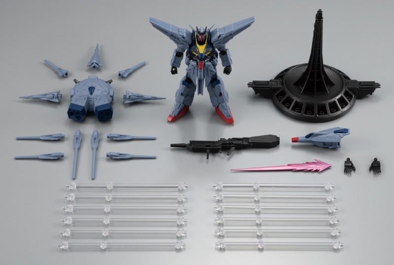 商品內容:本體、龍騎兵系統×11、背包、「審判式」大型光束步槍、複合兵裝防盾系統、大型光束軍刀特效零件、巨大雷射兵器「創世紀」型台座、平手造型替換手掌、龍騎兵用支架×12