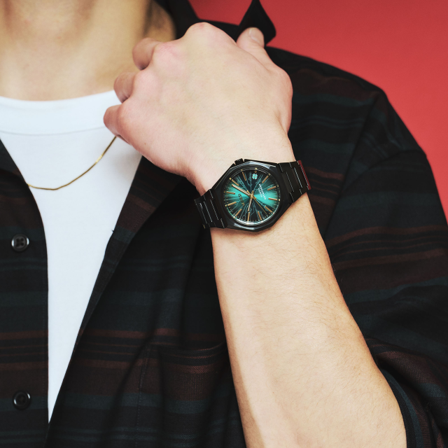 設計上錶面背景採用花垣穿越時的時空景象作為設計,以湖水綠搭配金色的整體外觀也讓讓人有不錯的視覺觀感,4 點鐘處更放置了四葉草的圖案。錶背有著花垣的圖像與限定數字,購買另附有專屬盒裝以及紀念特典卡片。限量 300 副。