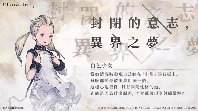 日本知名遊戲廠商 Square Enix 旗下《尼爾》系列首款手遊《NieR Re[in]carnation》(《尼爾:重生》)事前預約活動進行中,至今(16日)已累積突破10萬預約人數。本作由創意總監「橫尾太郎」等原班製作人馬以最高規格打造了全新的故事,官方首度公開遊戲內「牢籠」概念PV與主角設定,讓玩家搶先一窺牢籠世界的神秘面紗。現已成功解鎖獎勵「100個寶石」,當所有目標達成後,可獲得免費的4500個寶石(相當於15次轉蛋)、3張高級轉蛋券與大量養成素材獎勵。