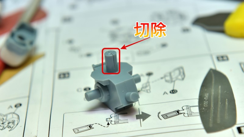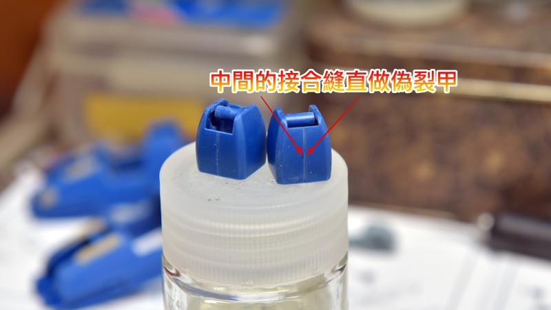 ▼切掉可明顯看到零件本身已經幫你做好孔位了完全不用鑽孔,切下來的插銷記得要將零件左右兩片黏死。