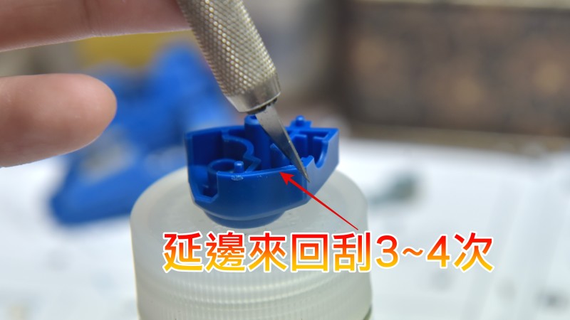 ▼在兩片零件的接縫處來回刮3-4次就完成了(詳細操作可看影片有教學示範)