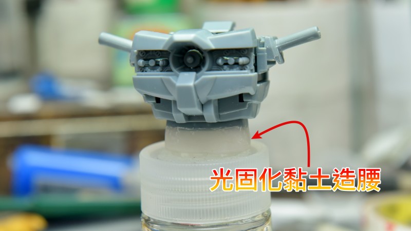 ▼最後使用光固化黏土做出頸部造型,原套件的球形關節則是直接黏上去就好由於有塑膠板當基底所以不用擔心塌掉。
