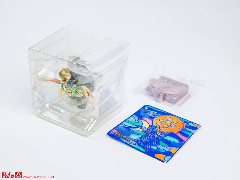 ▼ 內容物共有泡殼包裝的玩具本體、浮雕拼圖形式的配重幣,以及玻璃彩繪卡一張。