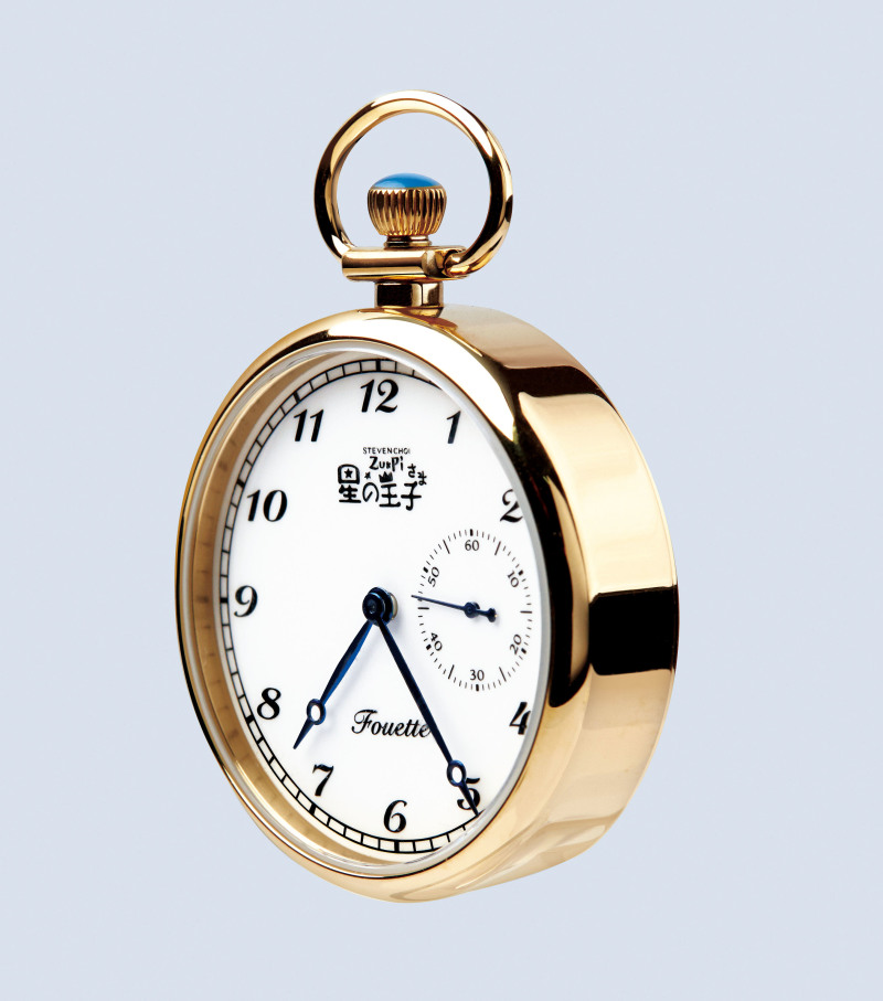 懷錶正面採用陶瓷白色的復古錶盤設計,並印有本次「星の王子」的字樣,指針也是極具質感的鋼藍色。