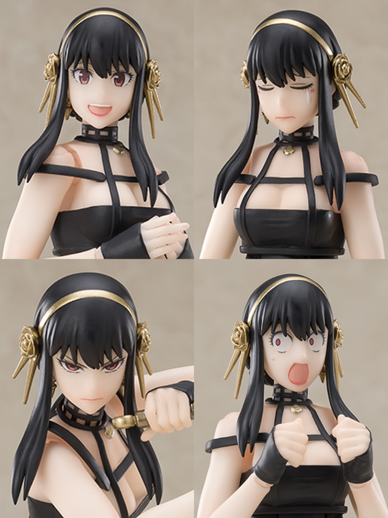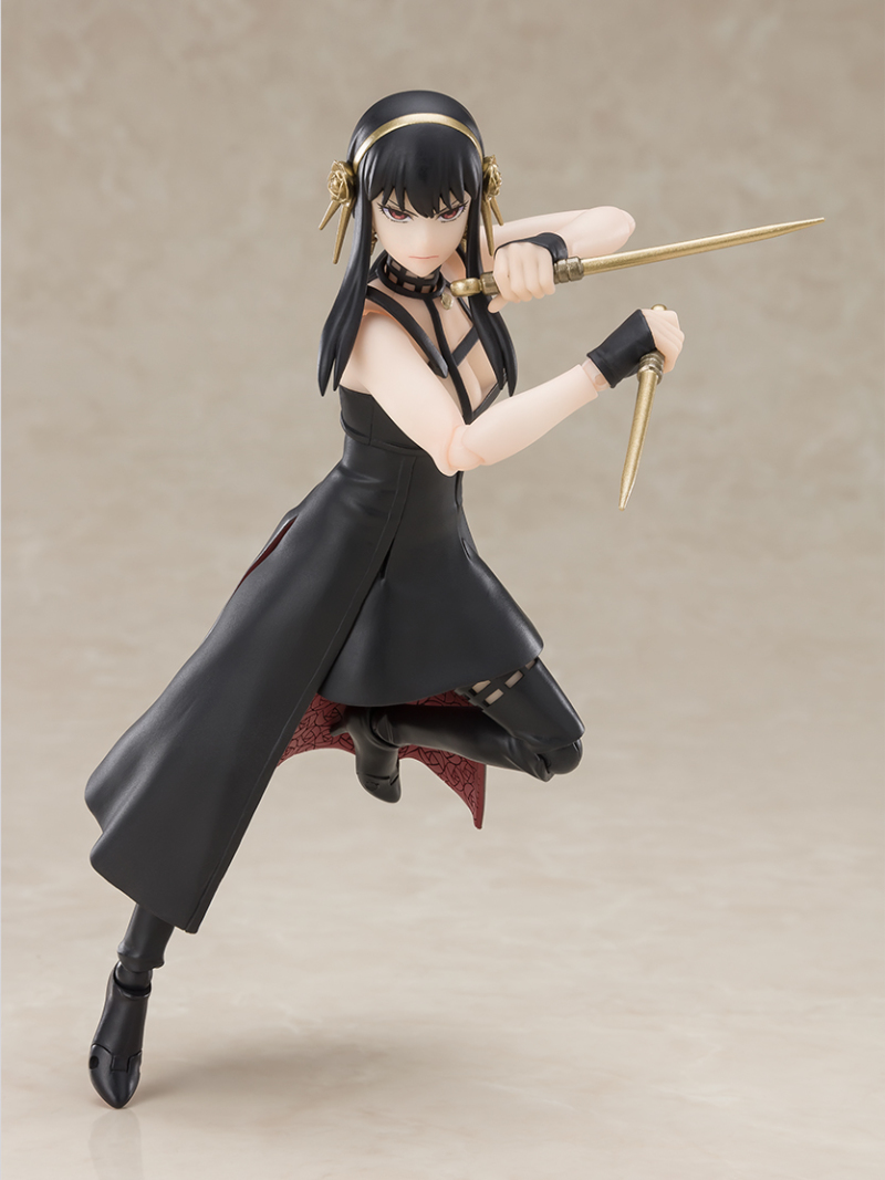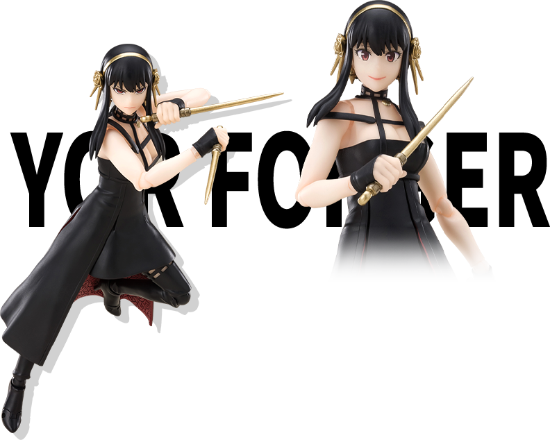 「S.H.Figuarts約兒·佛傑」可動人偶,以約兒擔任殺手時身穿的黑色禮服為造型,性感露出胸前與腿部的肌膚,頭上的髮飾與武器「Stiletto」施以質感金屬色,裙擺內部的薔薇花紋也仔細再現!除了微笑的普通臉以外,還附有開朗笑容、沮喪哭臉、殺氣十足的戰鬥臉以及被嚇到的震驚臉 4 種豐富的替換用臉部零件;搭配全身的可動關節和替換手勢、武器,賞玩殺手睡美人出擊的場景!