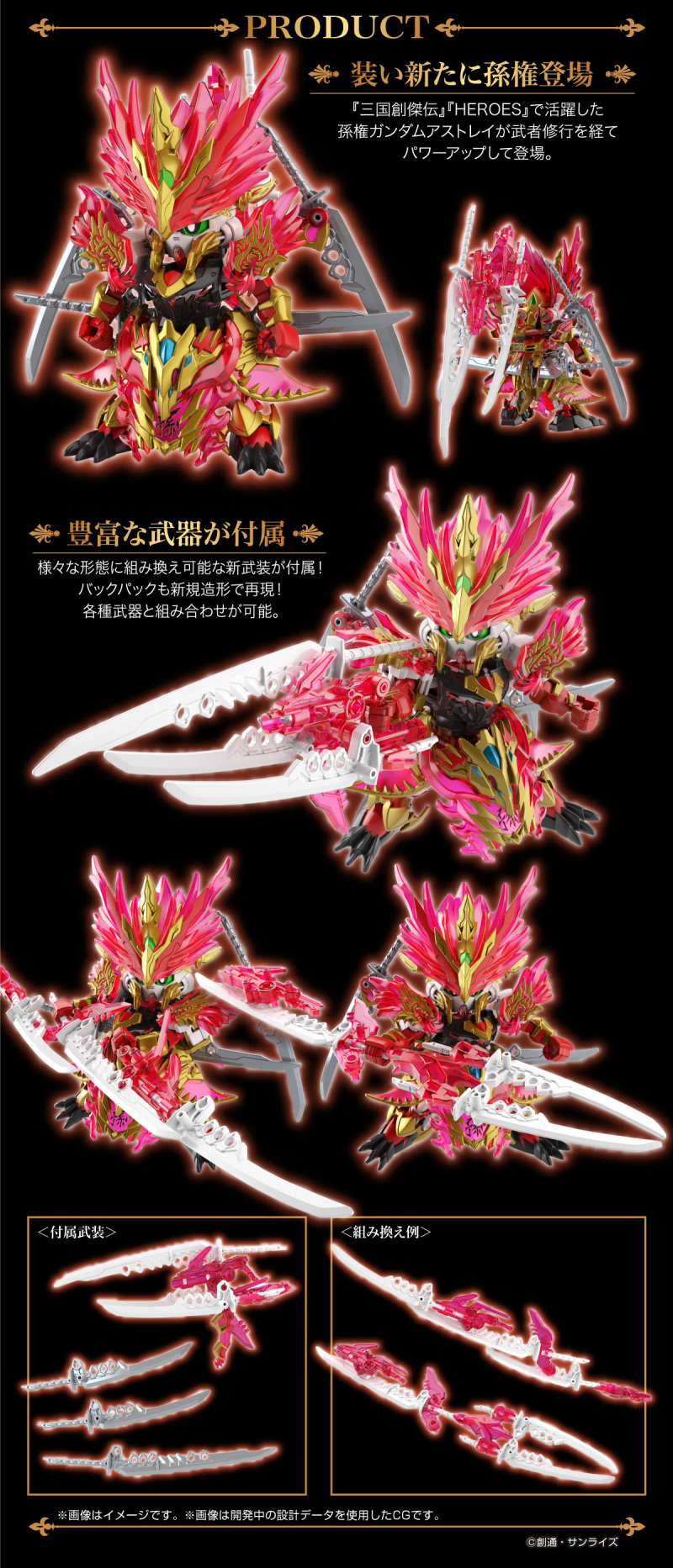 日本 BANDAI SPIRITS 公司 HOBBY 事業部於今日舉行的線上新作發表會『HOBBY NEXT PHASE 2022 SUMMER』中,發表了出自《SD 鋼彈世界群英集 龍騎士傳說》的最新組裝模型商品「SDW HEROES 孫權異端鋼彈 赫炎翔虎」預計於 2022 年 11 月發售的消息。