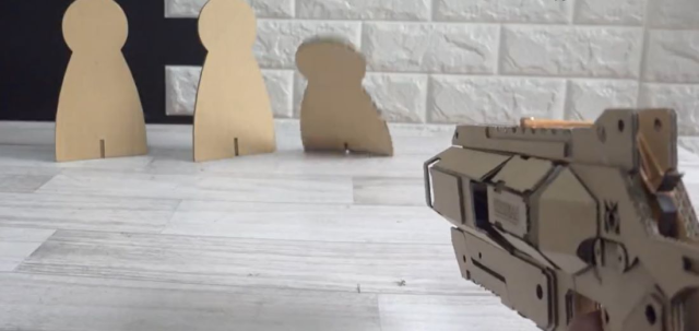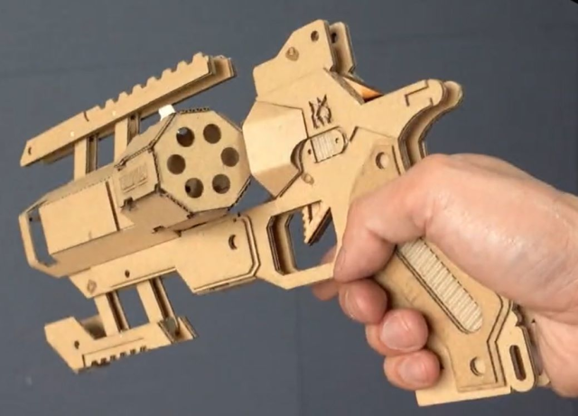 而這位瓦楞紙大師竟利用瓦楞紙將這個武器帶到現實,雖然不能使用實彈,但它也不是空有造型,連裝彈、發射都可以辦到,該不會靠紙製武器也能上頂獵了XD?