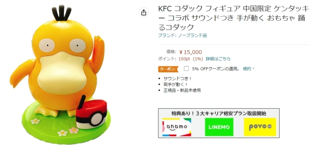 有等不及的網友發現,現在日本亞馬遜上已經有賣家放上這隻中國限定的可達鴨玩具,開價還高達15000日幣,只能說生活何處不黃牛,希望增田順一與眾多玩家的呼喚,可以讓日本的網友們有機會買到它啊......