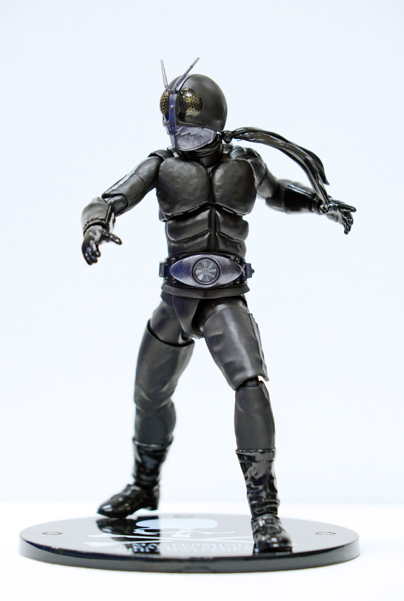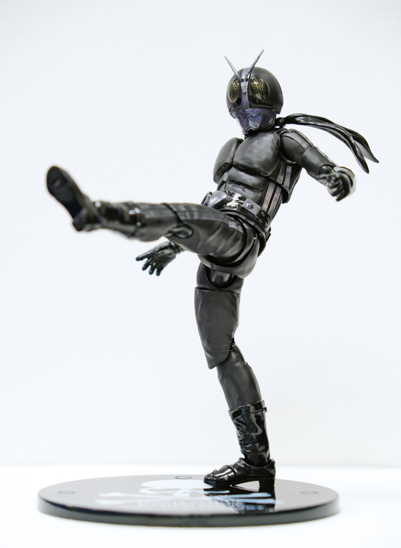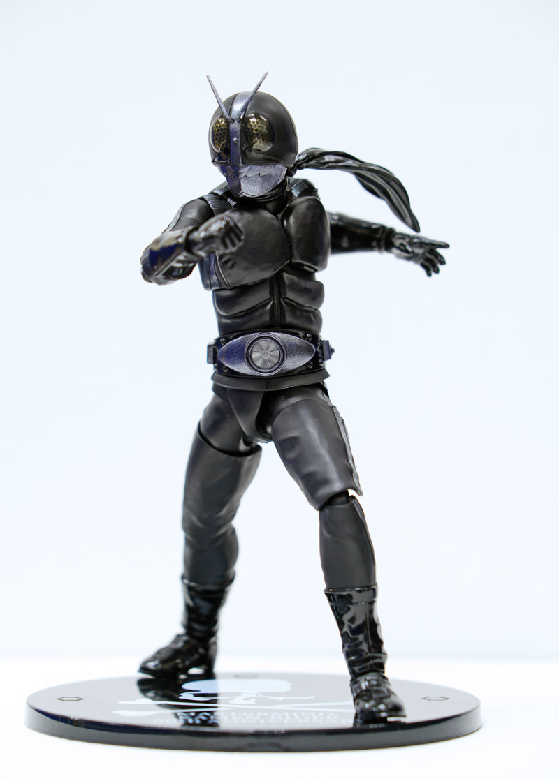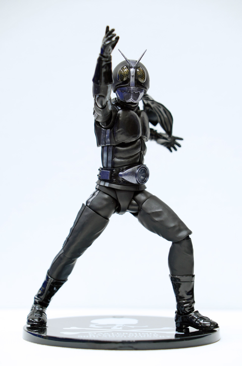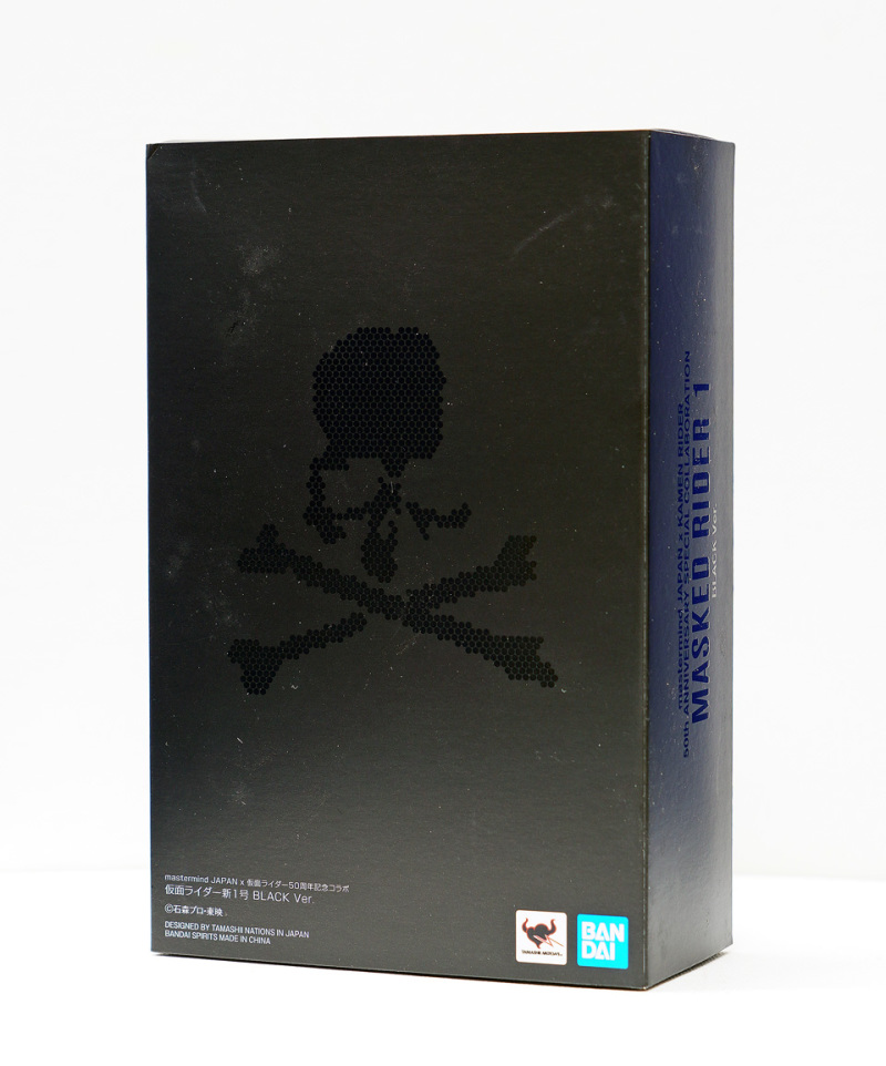 新一號全高約 145mm。整體造型、規格、可動設計基本與過去推出的版本相同,而塗裝配色則採用 Mastermind 的黑、灰、銀配色,另運用了深淺配色帶來更突出的形象。同時配件中還附上印有「 Kamen Rider x masterMIND 50周年記念台座」(否則你也不會入吧)。真骨雕的外型還原了皮套的外觀。QC 合格,頭盔有輕微溢色!全身各部分關節可動性不俗,想擺劇中任何姿勢也不用擔心。太棒了!