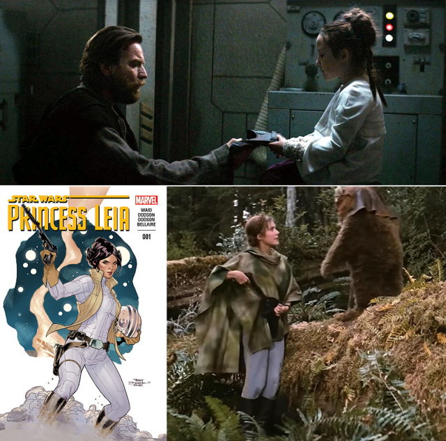 回到綠意盎然的奧德朗,鏡頭帶到了已平安回家的小莉亞,和第一集不同,她獨自更衣,比起公主更像個小小反抗軍,還配上了塔拉的槍套。她與父母一同接機,來者正是曾一同出生入死的那名老友,不過莉亞畢竟是個孩子,她衝上前迎接的居然是小機器人蘿拉(槍套稍後也就成了蘿拉的專屬休息區)。當歐比王與莉亞提及其生父生母,我們能聽到背景響起了第二部曲《複製人全面進攻》安納金與帕米的愛情主題旋律,莉亞詢問是否還能再相見,歐比王則說務必要小心,有粉絲將之解釋為多年後她的求救訊息會如此保守的原因。