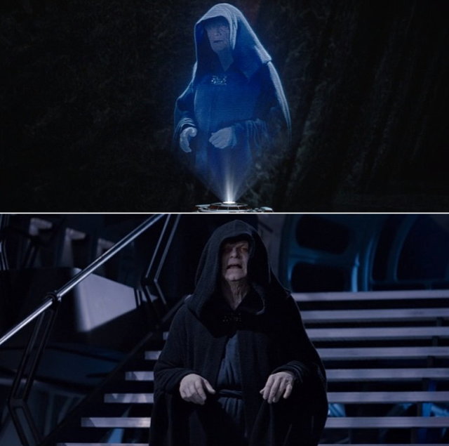 西斯大君開口第一句就是「你是來消滅我的嗎」,絕地大師則回答「我會做我該做的」,這段對話呼應電影《西斯大帝的復仇》在穆斯塔法的決戰,當時安納金怒斥帕米「妳帶他來殺我」,而當他表示「你不與我同盟就是我的敵人」,歐比王的回應也正是「我會做我該做的」。這邊也可看到歐比王擺出了從複製人戰爭以來招牌的備戰姿勢,意味他已完全恢復了絕地武士的身分,維德的回答也從當年的「你不妨試試看」(You will try)變成了「那你就受死吧」(Then you will die),同他在動畫《反抗軍起義》對亞蘇卡所言。