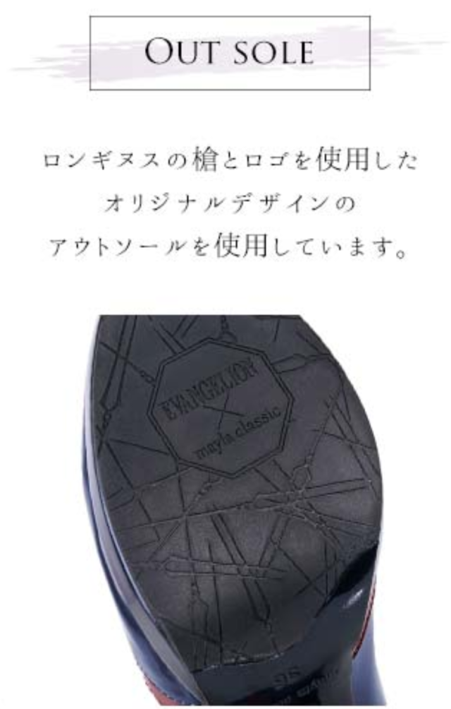 鞋底也暗藏玄機,在前腳掌底部藏有朗基努斯之槍與品牌合作的鞋底刻紋。