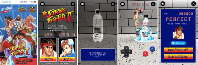 這次合作中,最讓人感到興趣的就是推出了「STRONG FIGHTER」AR 遊戲,將最經典的《快打旋風II 》 遊戲結合飲料本身的特色,可以操作隆與春麗,在 AR 的遊戲內跟原作 Bonus 關卡一樣,使出必殺技獲得點數,擊破畫面中的冰山秀出「THE STRONG 天然水」飲料罐。 ( 想遊玩遊戲的朋友可點擊此處至官方網站 )