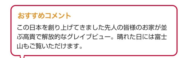 而房仲在網站上是怎麼形容這個建案的推薦之處的呢?答案是:「與創造出這個日本的先人們一起比鄰而居,有著高貴且遼闊的墓園美景。晴朗時也能看到富士山。」