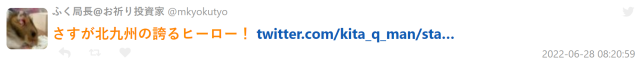 而事實上 KitaQman 在推特上,時常會分享美食相關的推文,都是以北九州當地的餐廳美食為主,並且幫助宣傳讓更多人想來該地品嚐美食,他也表示這是身為地方英雄該做的工作。