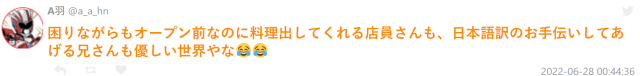 引起話題的是 KitaQman 表示,雖然最近忙工作,但到在附近的越南餐廳用餐時,發現自己點餐後自己以外的客人都不大敢來用餐了。但如果你覺得為何我還可以進去用餐,是因為我在店家開店前,去幫忙店家的菜單日文翻譯。( 看來店家真的是越南人士經營,需要地方英雄協助 XD。 )