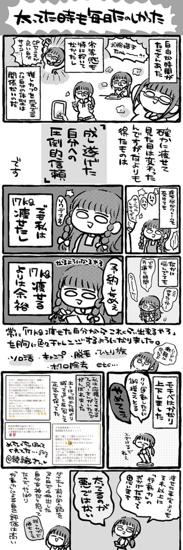 而事實上這位女網友自稱是「宅女」,不喜歡出門喜歡窩在家裡畫畫,在去年 6 月時下定決心要減肥,因為懶得出門的關係,選擇了《健身環大冒險》來運動,透過有效的飲食控制來約束自己,達成自己減肥的目標,她也將此畫成插圖給網友了解她的心路歷程。