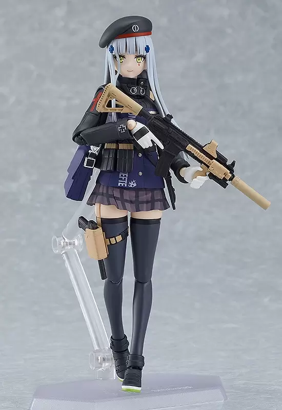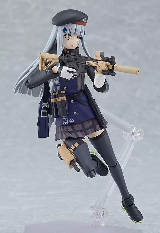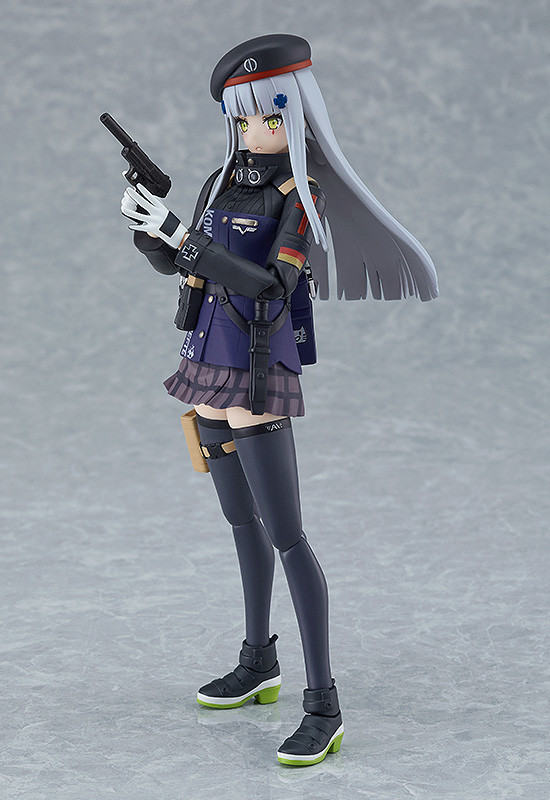 「figma 416」可動人偶,尺寸全高約 135 mm,由淺井真紀擔任協力製作,還原銀灰色的直長髮、螢光綠雙瞳,身上的裝備和絕對領域黑絲短裙也仔細再現,重點部分使用軟材質,確保平衡與可動性。附屬有淡淡表情的「冷靜臉」、有點困擾的「害羞臉」與溫柔「笑臉」三種替換表情。搭配象徵她的突擊步槍「416」武裝、消音器及拆裝彈匣、右腳的「手槍」與包包、帽子等配件,賞玩帥帥的戰鬥場景!