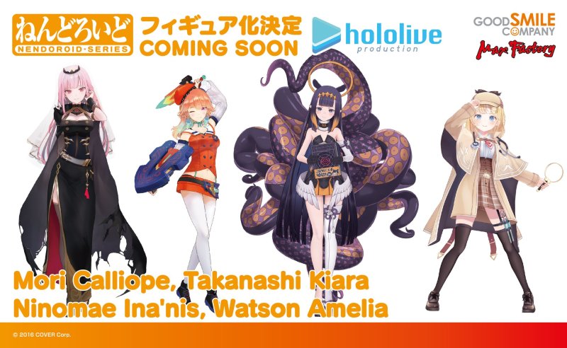 ・hololive EN figma Mori Calliope、Takanashi Kiara、Ninomae Ina'nis、Gawr Gura、Watson Amelia