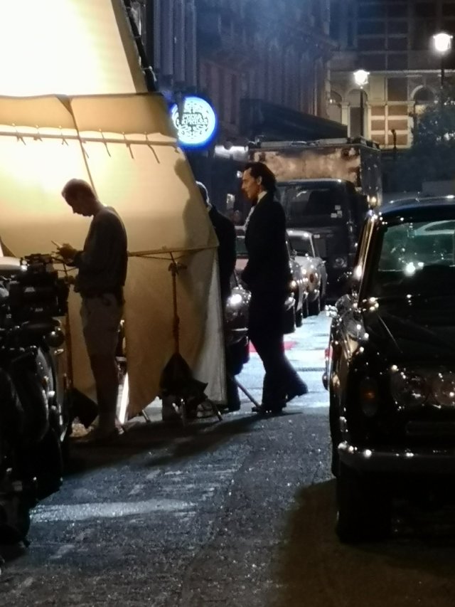 從各路網友們所分享的側拍照片中,除了可以看到穿著筆挺的燕尾服的洛基,還有莫比烏斯,出現在拍攝地點英國倫敦的「諾埃爾·科沃德劇院(Noël Coward Theatre)」外,也有眼尖的粉絲們發現,在戲院附近的電影海報佈景當中,也有藏著不少的相關彩蛋。