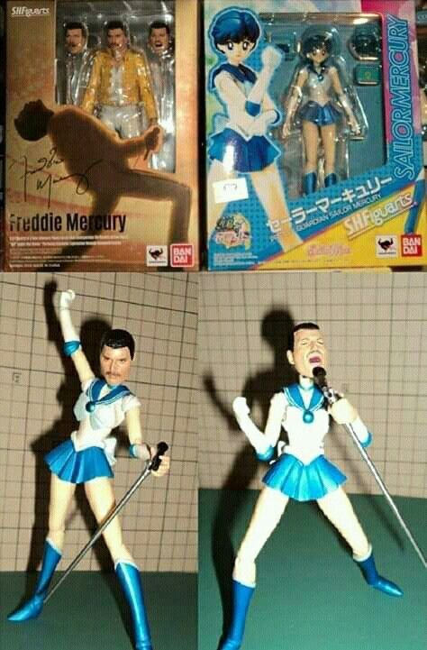 沒錯,正是玩「水手水星」與知名搖滾歌手佛萊迪‧墨丘里的名字梗,因墨丘里英文為「Mercury」意為水星,與水手水星相同,因此有了這樣的惡搞,這個迷因在美國廣為流傳,其源頭似乎是來自於這張圖片,導致後期有許多人以Cos來呈現這個迷因。