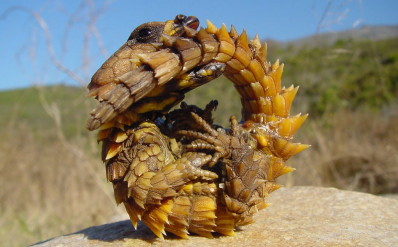 犰狳環尾蜥是一種外觀與行為都相當特殊的蜥蜴,又稱南非犰狳蜥犰蜥、犰狳蜥,為犰狳環尾蜥屬。身體扁平,體色為淺褐色或深棕色,全身佈滿如盔甲般厚重且尖銳的鱗骨鱗片,因此也有鎧甲小龍、偽龍等稱號;遇到危險時會咬住自己的尾巴,身體縮成一圈,保護自己柔軟的腹部,並且快速「滾走」,也稱為咬尾刺蜥。