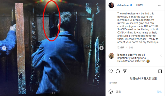 至於這把劍是怎麼出現的,相信對於有認真看戲的朋友們,其實也肯定非常清楚由來。大衛哈伯也於他的Instagram所分享的截圖中清楚指出,在《怪奇物語》第四季第七集時,原是監獄囚犯為了對付魔神所拿的武器,但因為最終不幸被怪物吃掉,因此這把劍也就落在地上,成為哈普的一大轉機。